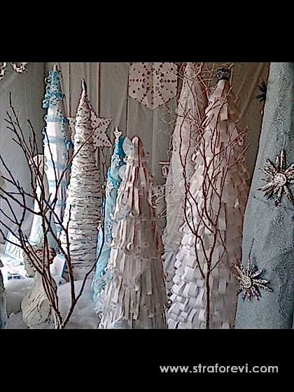 Magaza Vitrini dekorunda kullanılan strafor Konik objeler.